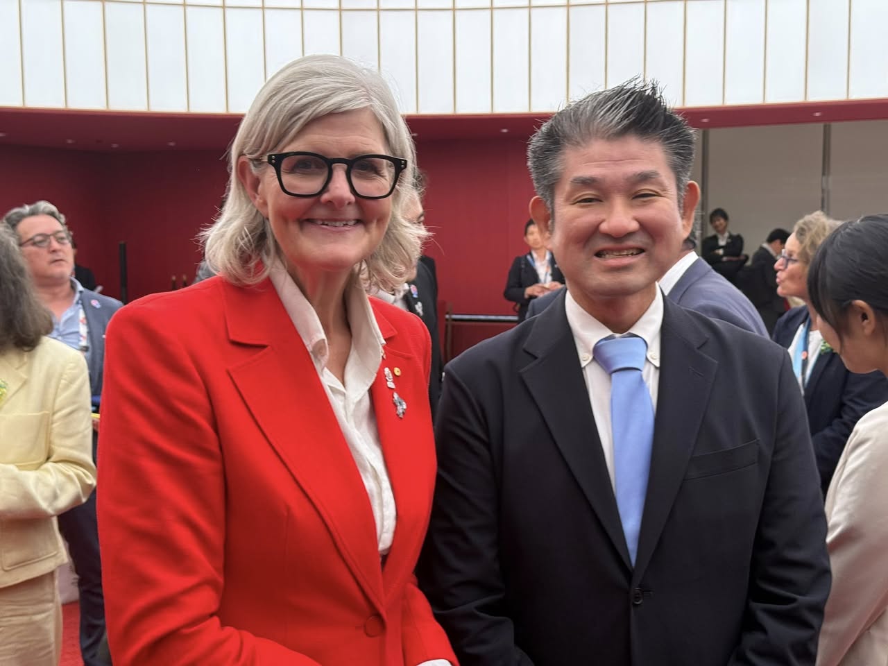 おはようございます。昨日の警報では特に大きな被害もなく安心しました。気象台によれば、熱帯低気圧から台風に発達した台風15号は、明日5日の昼前から昼過ぎにかけて奈良県に最も接近する見込み。また台風周辺の暖かく湿った空気が流れ込む影響で、本日4日昼前から大気の状態が不安定となり局所的に雷を伴った激しい雨が降る可能性もあるようです。引き続きお気を付け下さい! 昨日はオーストラリアのナショナルデーで万博会場へ。第28代オーストラリア総督のサム・モスティン総督の来場を仰ぎ、万博担当大臣やオーストラリアと交流のある自治体や企業団体の代表と共に歓迎しました。 奈良市はキャンベラと1993年に姉妹都市となりましたが、先の対戦での対立により反日感情が極めて厳しかった戦後、奈良のグリン神父兄弟の献身的な活動で友好の架け橋が築かれた経緯があります。オーストラリアは緊迫する世界情勢の中でも日本と価値観を共有出来るパートナーですので今後も様々な交流を重ねたいと思います。
