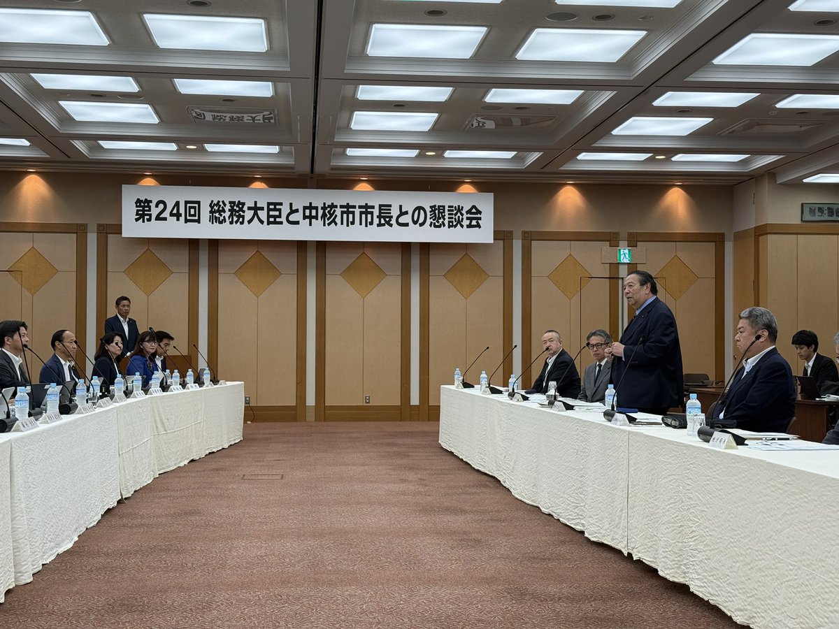 おはようございます。昨日は中核市市長会に併せて総務大臣との意見交換が行われました。大臣からは来年度予算に向けた地財計画については「引き続き健全化に取り組む」、地方創生については「これまでとは異なる視点で県と市町村の在り方を見直す」、物価高対策では「労務費の価格転嫁による適切な予定価格の設定を」等など述べられました。